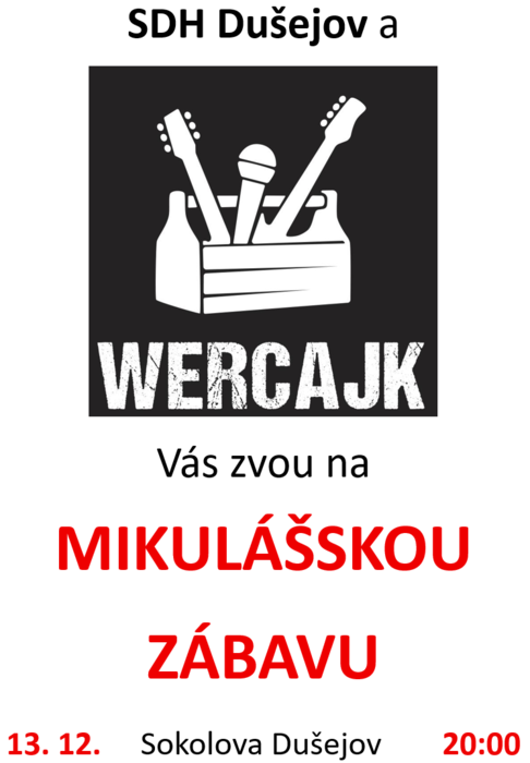 SDH Dušejov Vás srdečně zve na Mikulášskou zábavu. Hraje kapela WERCAJK.