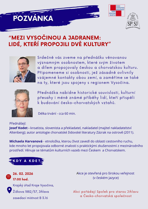 Úvod > Aktuality > Pozvánka na přednášku Mezi Vysočinou a Jadranem: Lidé, kteří propojili dvě kultury
