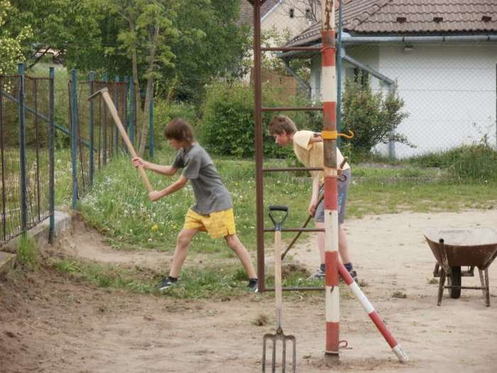 Úvod > O obci > Fotogalerie > Brigádníci na nohejbalovém hřišti 19.5.2011