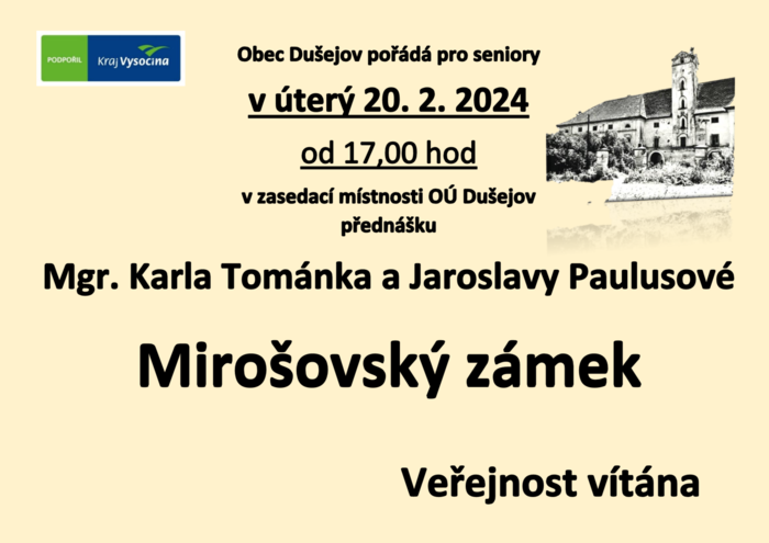 Přednáška paní Paulusové a Mgr. Tománka o Mirošovském zámku