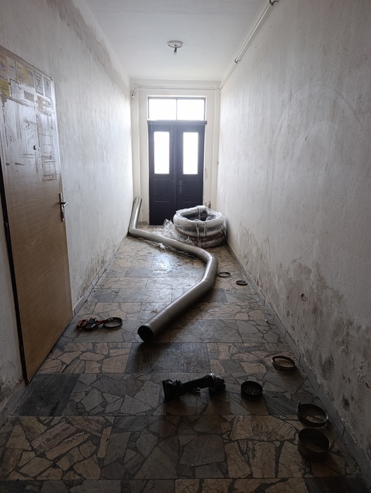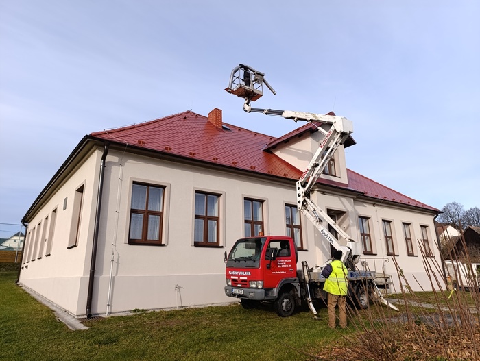 Úvod > O obci > Fotogalerie > Vložkování komínů na budově staré školy