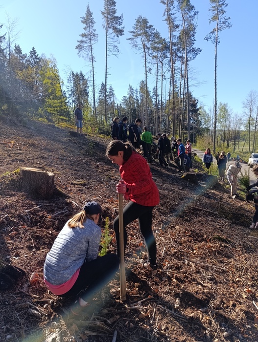 Žáci druhého stupně ZŠ Dušejov v pátek 26.4.2024 v rámci akce Čistá Vysočina vyrazili do obecního lesa, kde jim odborný lesní hospodář, starající se o lesy obce Dušejov, poutavou formou pověděl o životě stromku od semínka až po kácení a využití dřeva. Pověděli jsme si také o kůrovcové kalamitě a s ní související nutné obnově lesů. Poté jsme si vyzkoušeli, jaké to je vysadit kus lesa. Vysadili jsme cca 200 smrků s balem a teď už nezbývá nic jiného, než stromečkům přát, ať se ujmou a dětem poděkovat za pomoc a zájem.