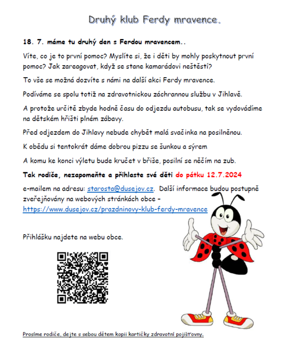 Rodiče, hlaste děti do tohoto pátku 12.7.2024.